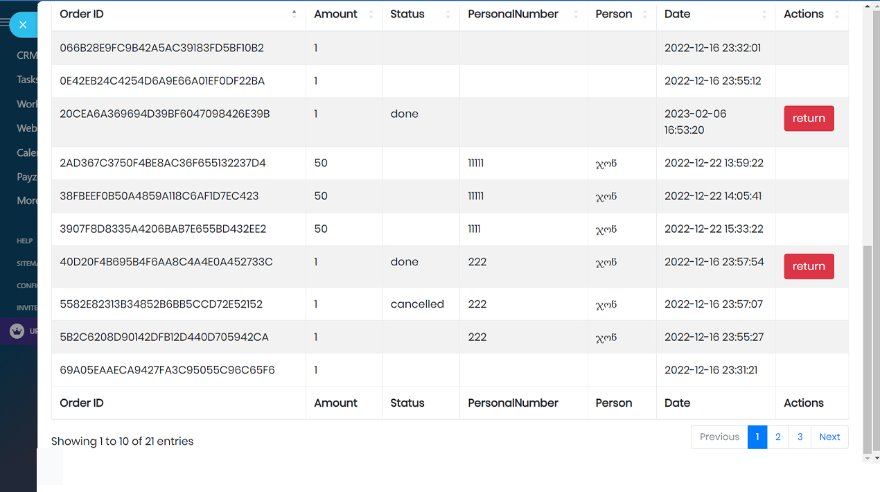 · See the list of payments (date, amount, name, passport number, status, etc.)