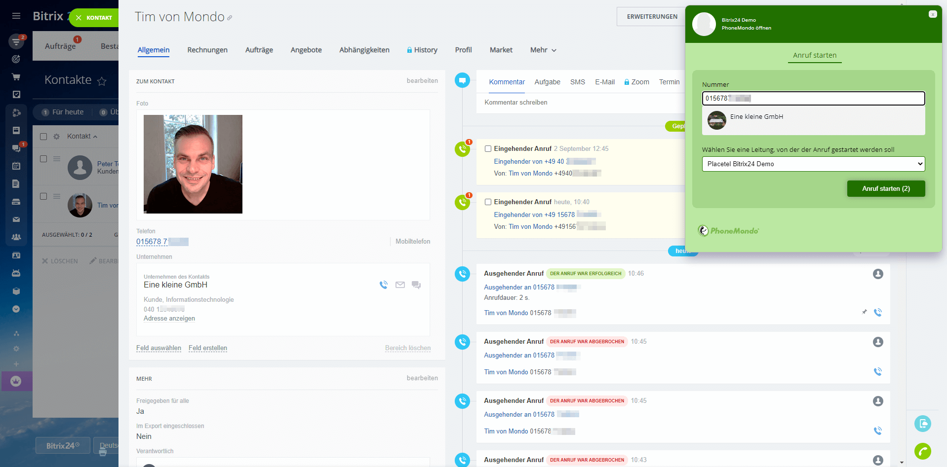 PhoneMondo connects your existing phone system or PBX to your CRM. Get instant callerID notifications with details from your Bitrix.