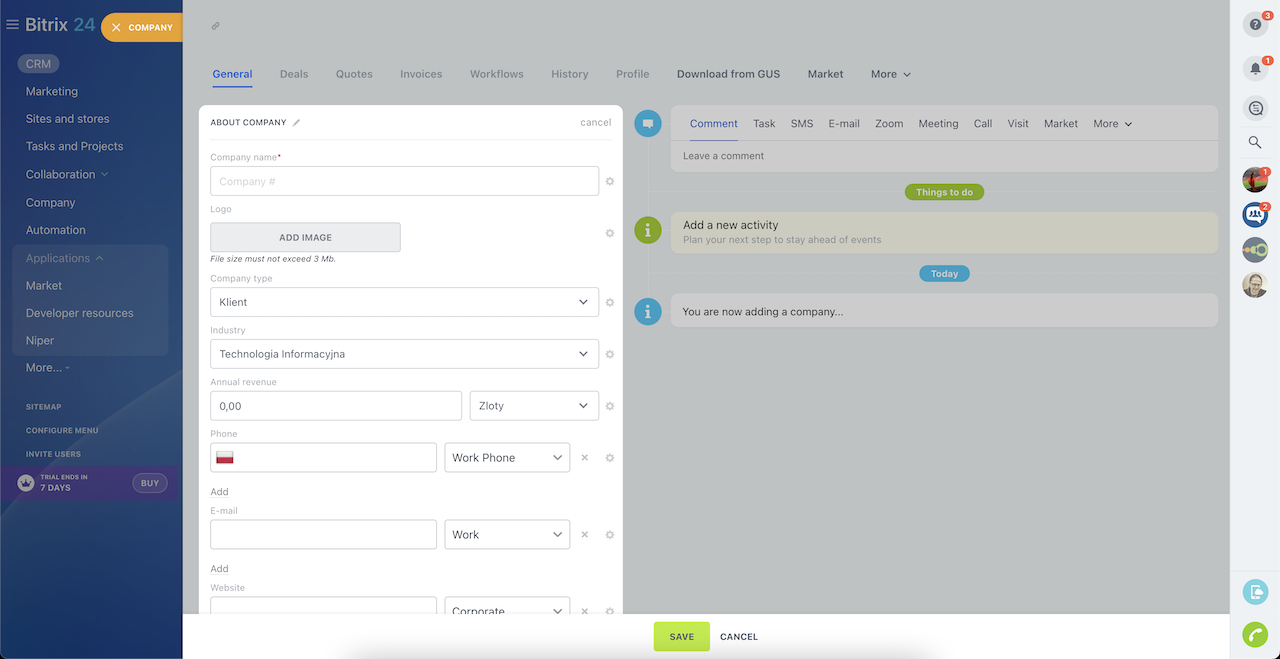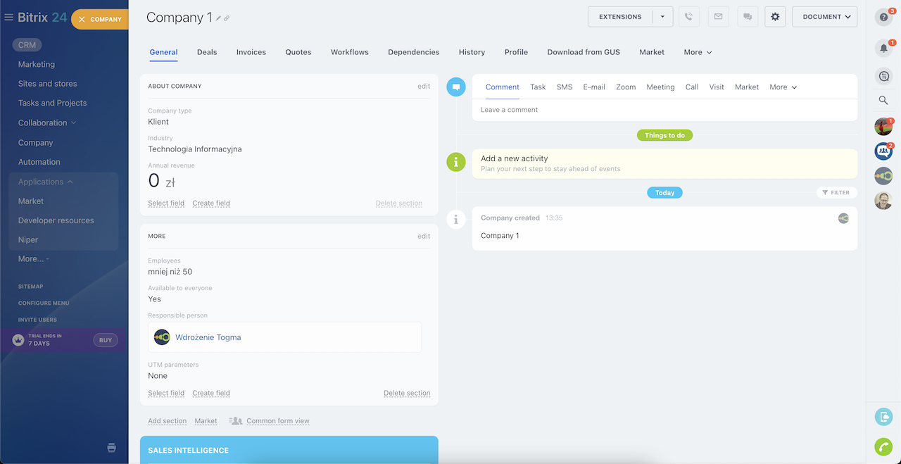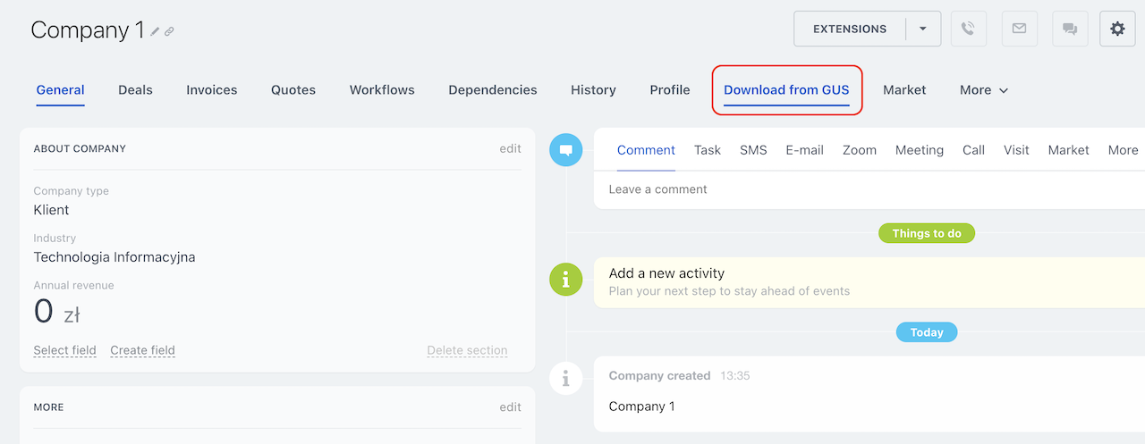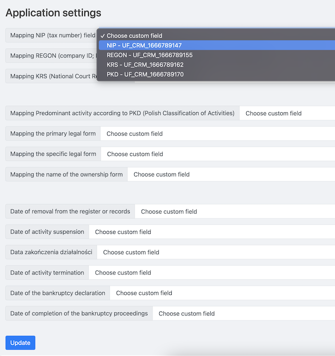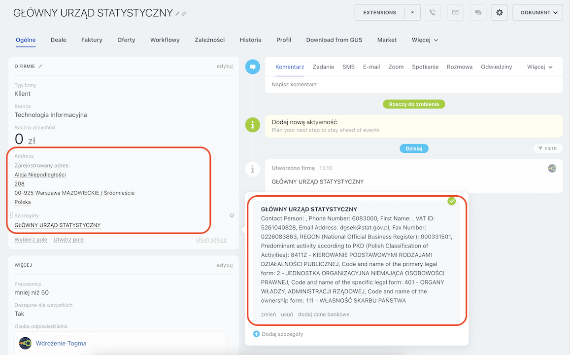 FETCH DATA FROM GUSThe application allows the integration of Bitrix24 with the Central Statistical Office of Poland (GUS) in order to download current company registration data - according to NIP, REGON or KRS.