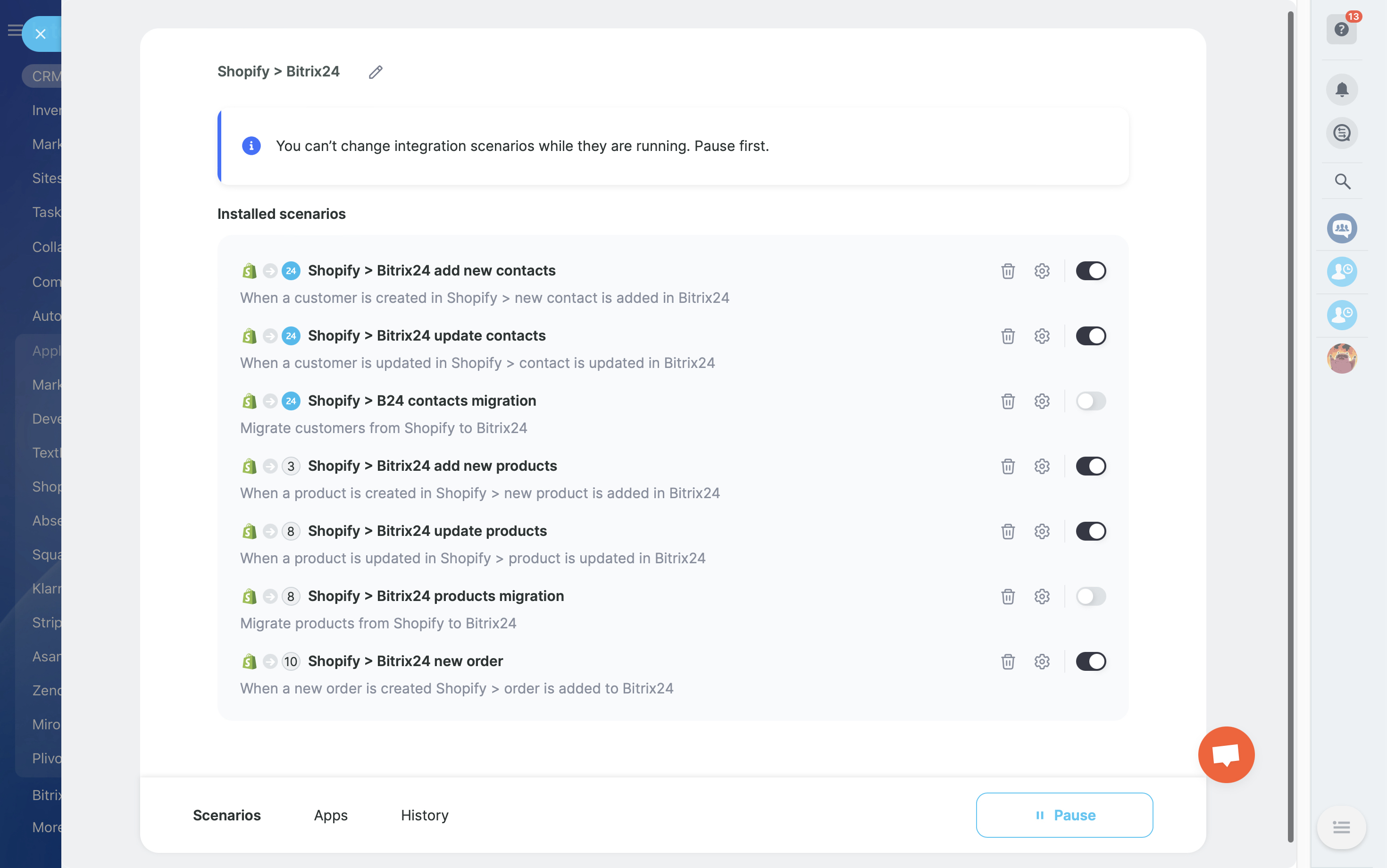 - Real-time updates in Bitrix24 reflecting changes in Shopify orders.