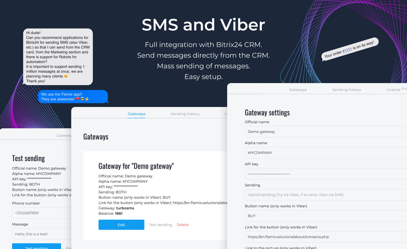 - Supports different types of sending: SMS, Viber, or hybrid sending (first to Viber, if not delivered, then SMS);