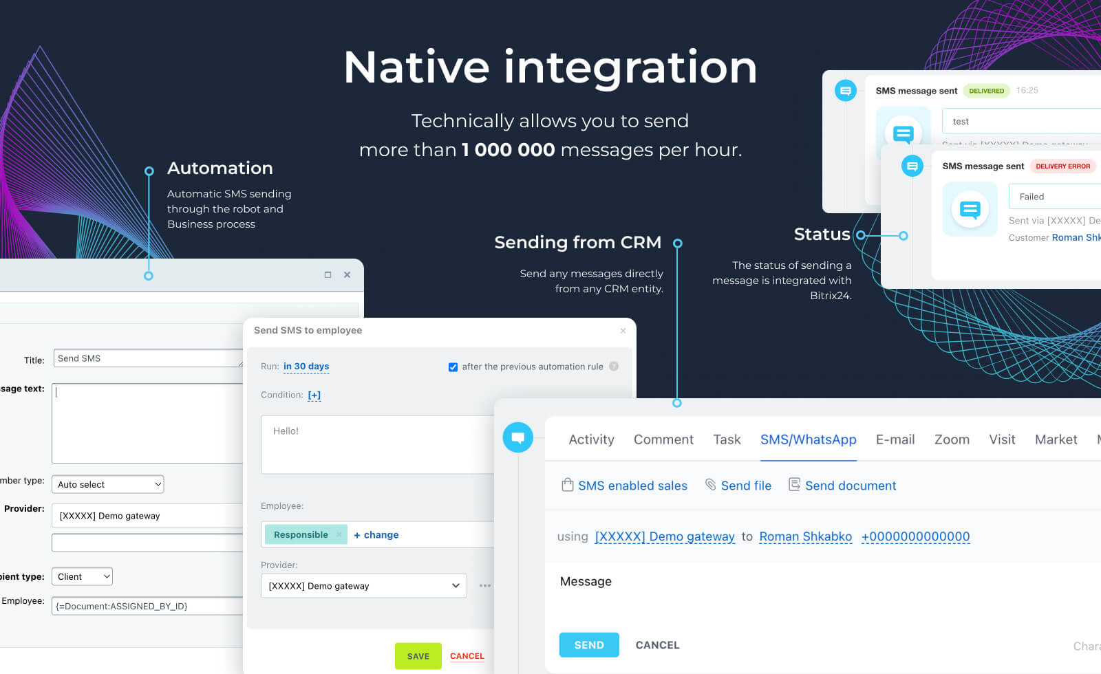 - Checking and displaying the status of the message delivery directly in the CRM (whether the message has been delivered or not);