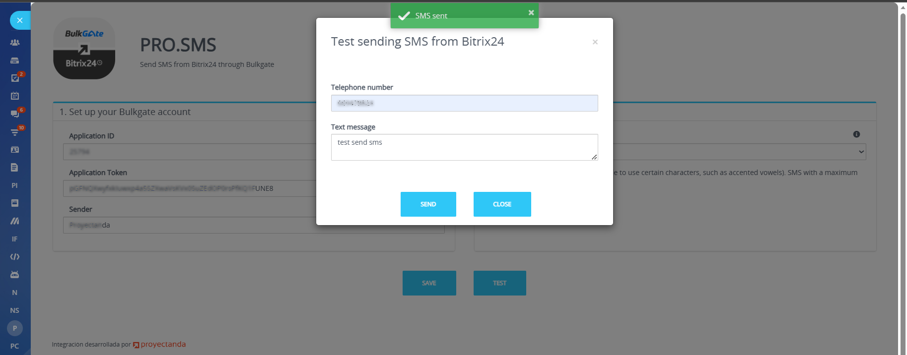 PRO.SMS allows you to send SMS from Bitrix24 through Bulkgate, one of the SMS providers with one of the most competitive rates on the market.