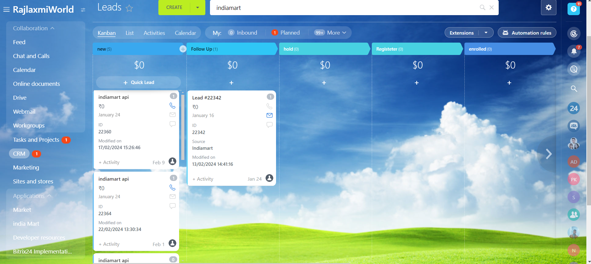 This is an amazing application, in which the application automatically syncs data from IndiaMart to Bitrix24. The most effective application which helps us to utilize our time and also generate leads and deals